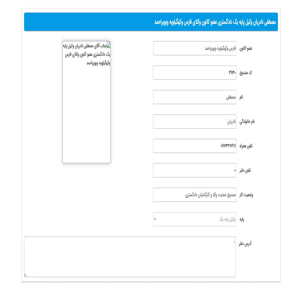 وکیل پایه یک دادگستری شیراز فلکه گاز ۱۰۰متر به سمت اطلسی طبقه فوقانی بانک رفاه کارگران