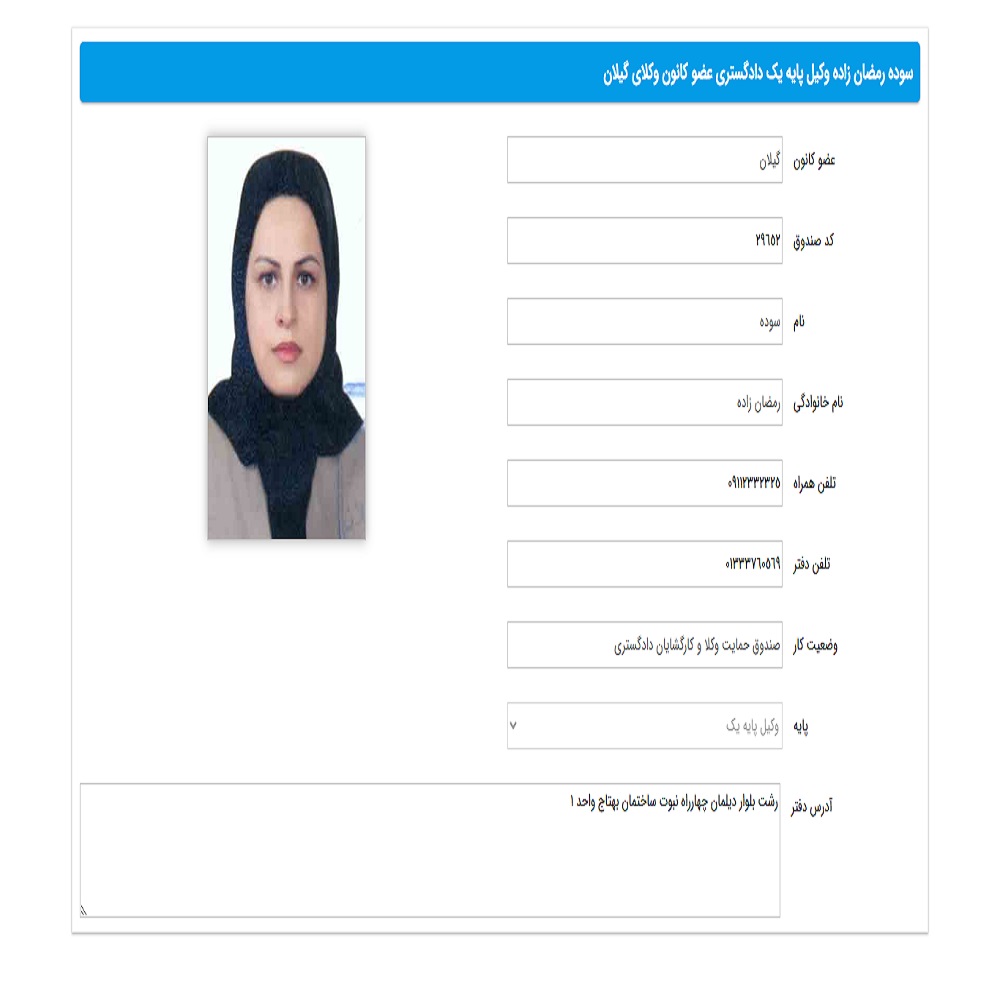 - وکیل سوده رمضان زاده (گلباغ نماز)