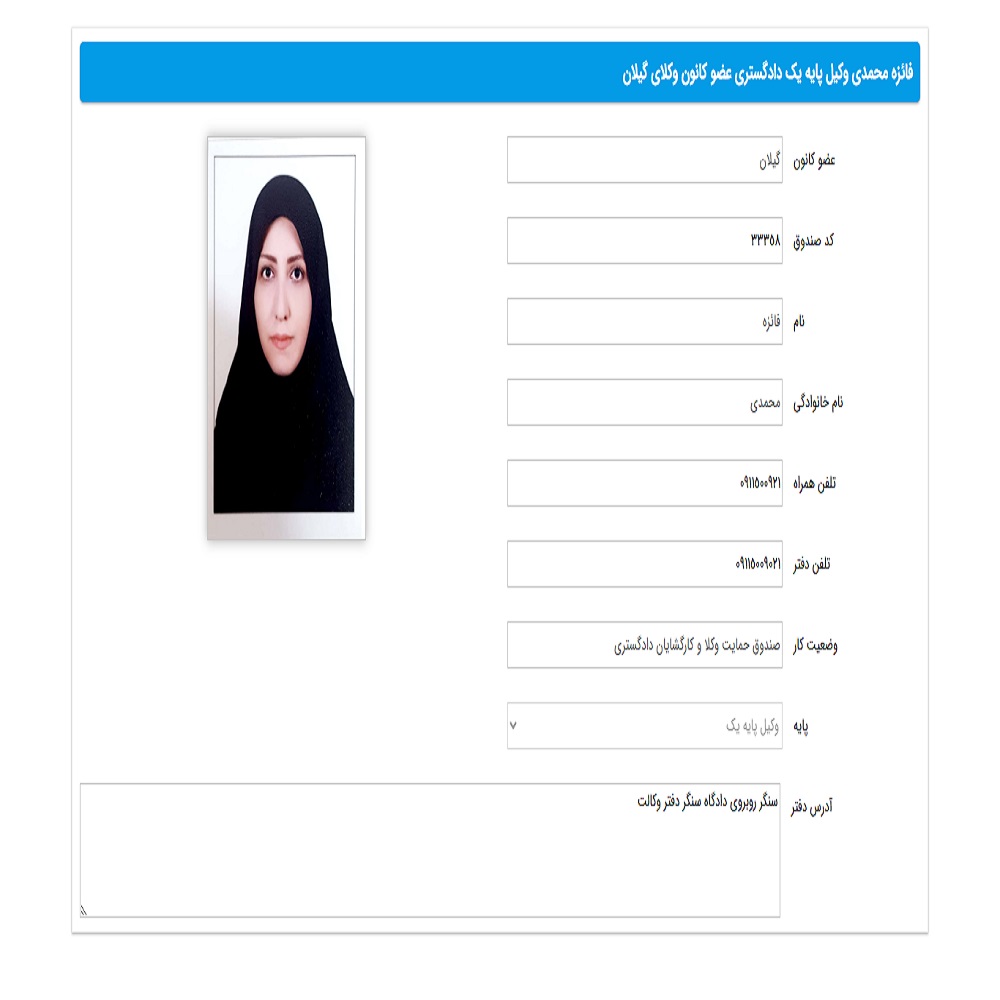 - وکیل الهام حاجی علینژاد امیری (گلسار)