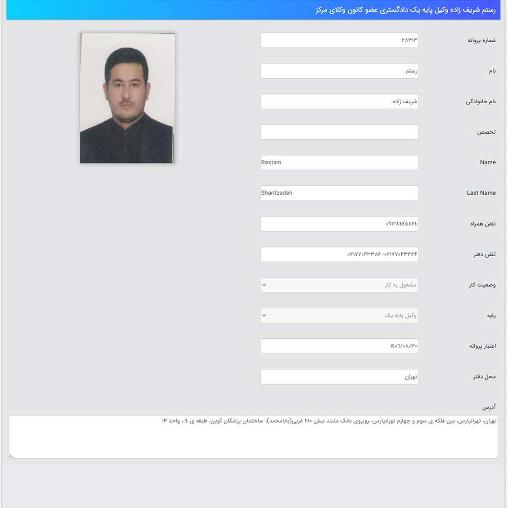 - وکیل رستم شریفزاده (فلکه سوم تهرانپارس)