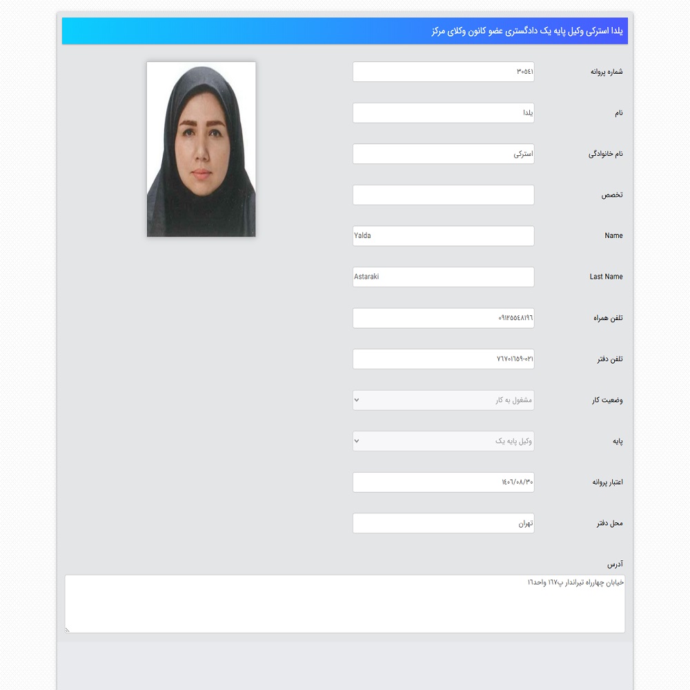 - وکیل یلدا آسترکی (بزرگراه شهید سلیمانی)
