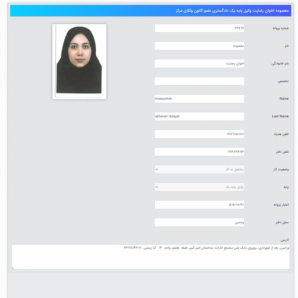 وکیل معصومه اخوان