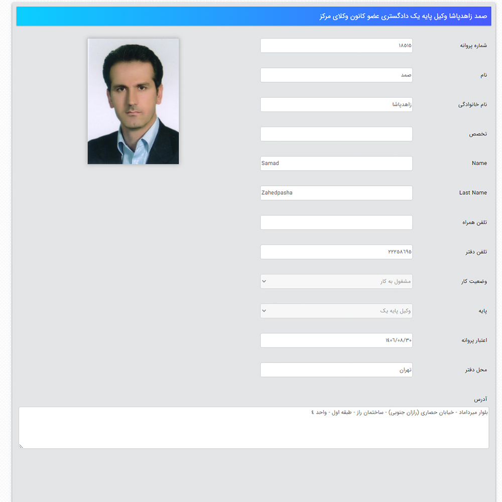 | وکیل صمد زاهد پاشا | دعاوی کار، خانواده و شرکتی | بلوار میرداماد |