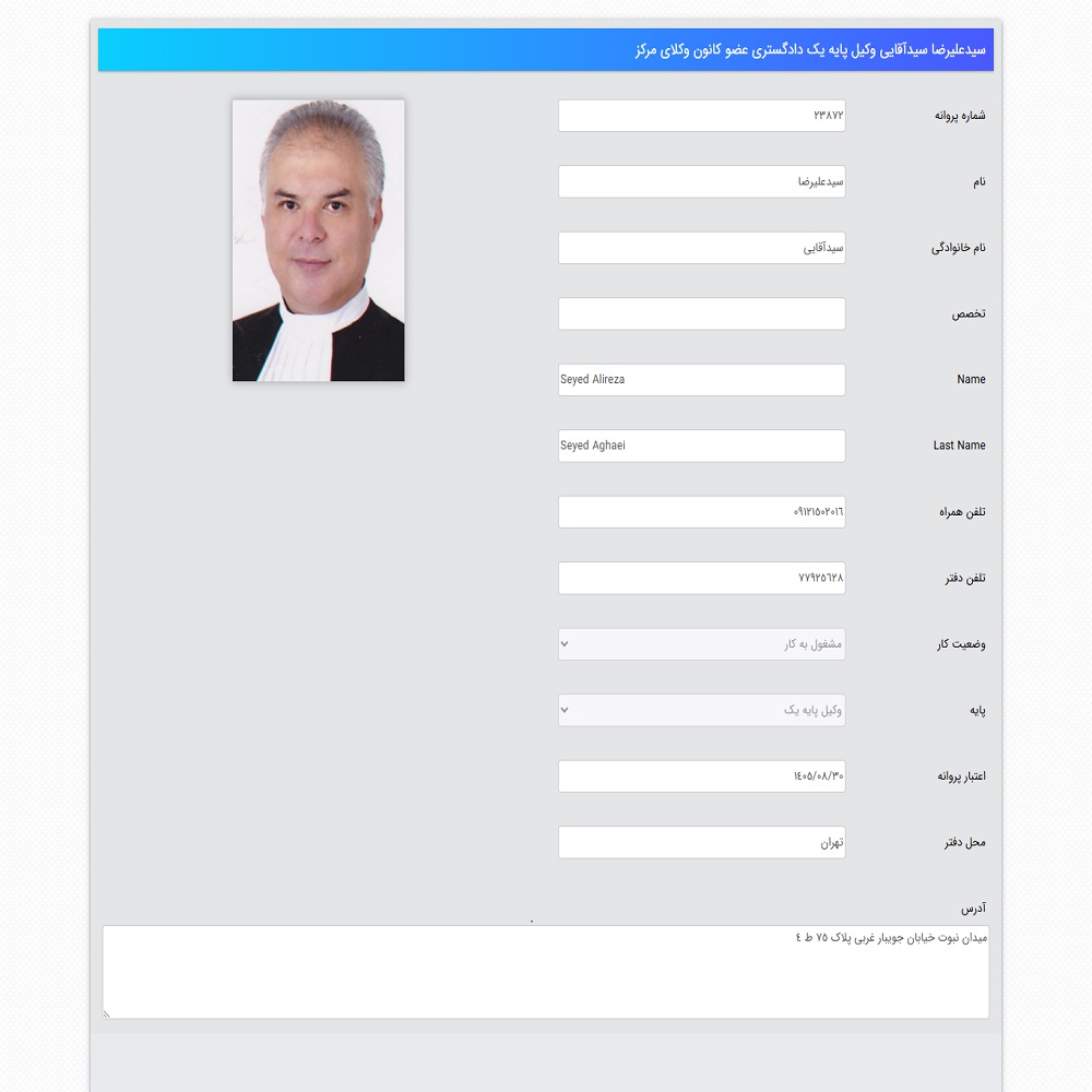 آقای سید علیرضا سید آقایی کارشناس ارشد حقوق جزایی، وکیل پایه یک دادگستری و مشاور حقوقی هستند. ایشان عضو کانون وکلای دادگستری می‌ باشند و موفق شده‌ اند که در دوره آموزشی بین المللی حمایت از شهود و قربانیان جرم با دعوت و شرکت سازمان بین‌ المللی و دوره آموزشی بین المللی UNODC با دعوت و شرکت سازمان ملل متحد شرکت کنند. ایشان این دوره‌ ها را با موفقیت به پایان رسانده‌ اند. شماره پروانه وکالت آقای سید آقایی 23872 است‌.